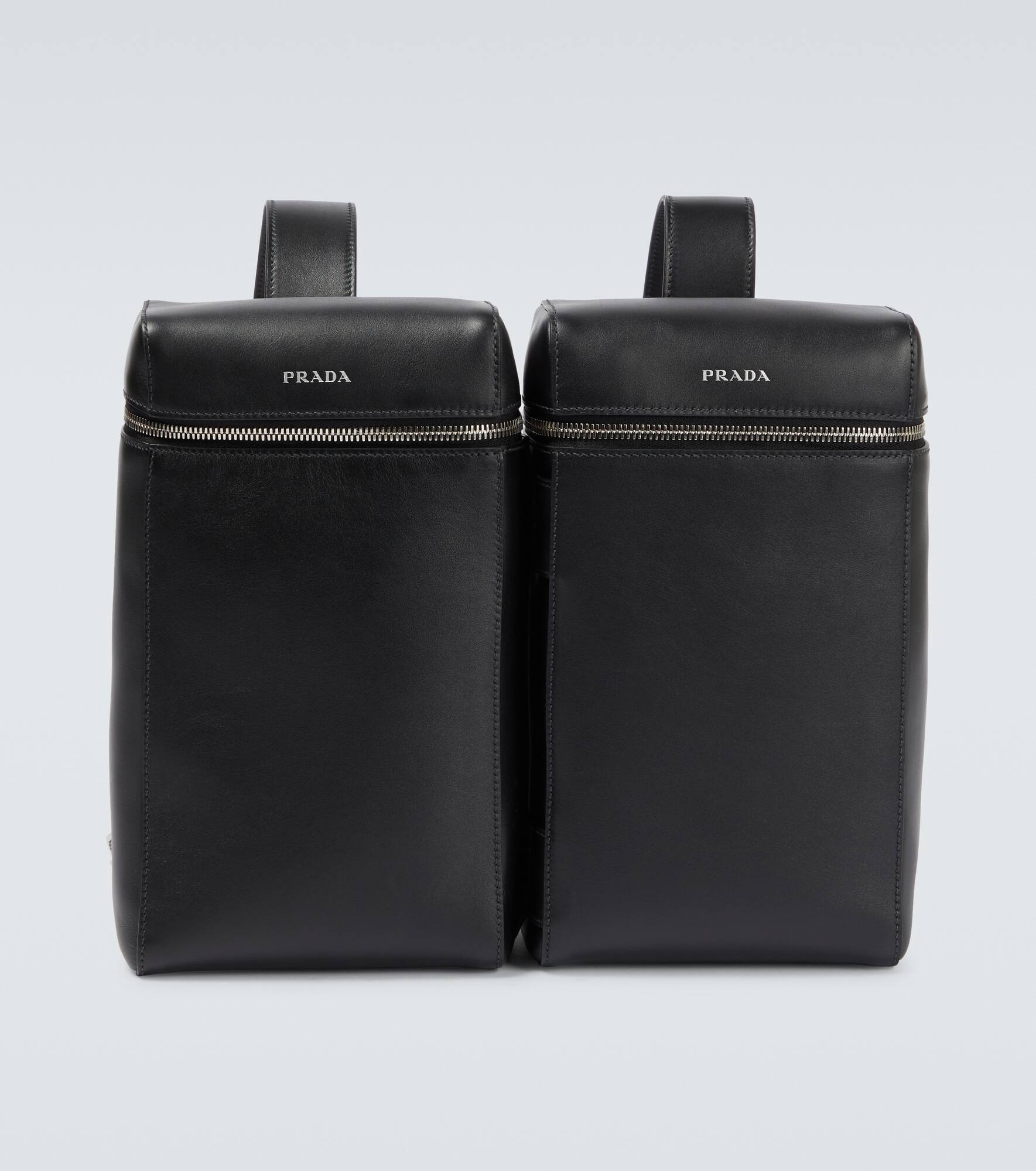 Prada reimagines the backpack with this convertible style, comprising of two leather bag components that can be worn together or apart. The style is made from black leather finished with silver-tone hardware. Product Details - Made in Italy - Comes with dust bag - Designer color name: Nero - Color of fastening: silver - Internal details: leather lining, internal slot pockets - Closure: zipped top, VELCRO® fastening - Material: leather - Adjustable shoulder straps - Color of strap: black - Item number: P00700328 Size & Fit - Height 27cm-10.5" - Min. width 15cm-6" - Max. width 30cm-12" - Depth 9cm-3.5" - Min. length shoulder strap 79cm-31" - Max. length shoulder strap 89cm-35"