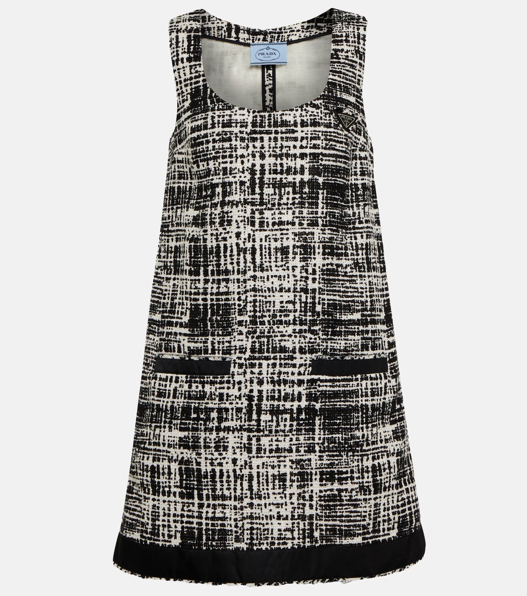 Reminiscent of styles from the '60s, this minidress from Prada is cut to an A-line silhouette. It's made from cotton and linen tweed with two small patch pockets. Product Details - Material: 70% cotton, 30% linen - Lining: 100% cotton, fully lined - Made in Italy - Designer color name: Avorio+Nero - Pockets: patch pockets - Closure: invisible zipper - Care instructions: dry clean - Item number: P00635334 Size & Fit - True to size - Designed for a loose fit - The model seen in the picture is 178cm-5'10" and wearing a size IT 40
