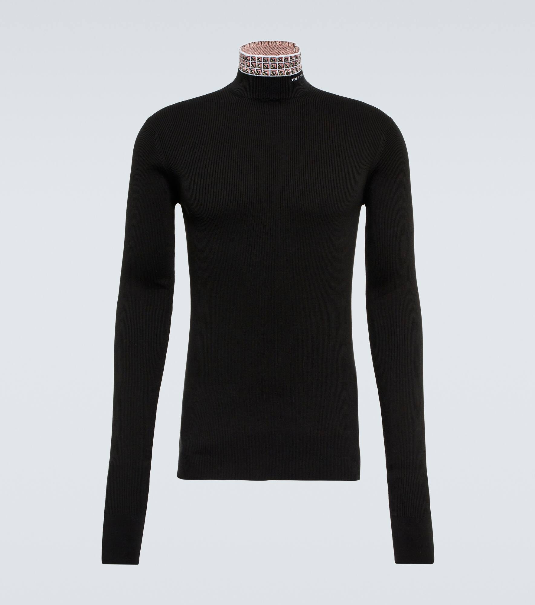 Making its debut on Prada's FW22 runway, this turtleneck sweater is inspired by science fiction films. The slim-fit design is made from a cotton blend with a ribbed effect and has a jacquard motif on the neck. Product Details - Material: 95% cotton, 4% polyamide, 1% elastane - Care instructions: dry clean - Made in Italy - Designer color name: Nero + Alabastro - Item number: P00700233 Size & Fit - True to size - Close fit at the neck - Skinny fit - Falls to the hip - The model in the picture is 185cm-6'1" and wearing a size IT 48