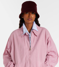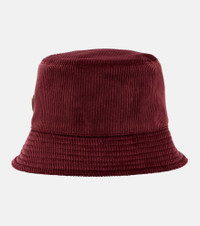 Instantly recognizable, the triangle has stood as Prada's enduring emblem since 1913. The iconic symbol is featured on the side of this cotton corduroy bucket hat. Product Details - Material: 100% cotton - Care instructions: dry clean - Made in Italy - Designer color name: Burgundy - Item color: burgundy - Hardware color: gold - Details: 100% calf leather - Contains non-textile parts of animal origin - Item number: P01120281 Size & Fit - Circumference size XS 56cm-22" - Circumference size S 57cm-22.5" - Circumference size M 58cm-23" - Circumference size L 59cm-23" - Circumference size XL 60cm-23.5" - Width of brim 5,5cm-2"