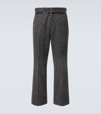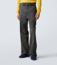 Where craftsmanship and innovation converge, these Prada pants are the perfect blend of both. Made from pure cotton gabardine they feature a tweed print, wide-leg cut and bold 3D-printed belt. Product Details - Material: 100% cotton - Care instructions: hand wash - Made in Italy - Designer color name: Piombo - Pockets: side slit pockets, back pocket - Closure: zip and hook fastening - Adjustable tabs at the waist - Lining: 100% viscose - Contains non-textile parts of animal origin - Pocket lining: 100% cotton - Item number: P01008302 Size & Fit - True to size - Non-stretchy fabric - Straight leg - Unhemmed for tailoring - Height of model is 185cm-73" and wears a size 48