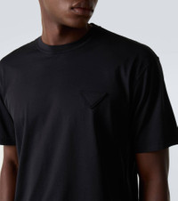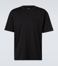 Prada takes Italian heritage into a distinctly modern direction with a streamlined and fashion-forward approach. This T-shirt is crafted from cotton jersey and is topped with the brand's iconic logo. Product Details - Material: 100% cotton - Care instructions: hand wash - Made in Italy - Designer color name: Nero - Item color: black - Collar: crewneck - Side slits - Item number: P01060808 Size & Fit - True to size - Designed for a loose fit - Slightly stretchy fabric - Falls to the hip - The model in the picture is 185cm-6'1" and wearing a size L