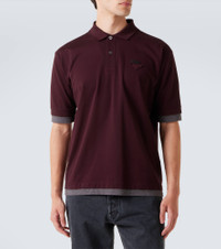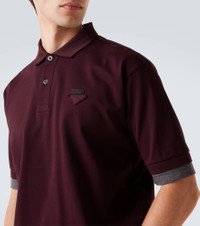 Prada channels Italian heritage through a modern, fashion-forward lens. This cotton polo shirt features a clean cut, a classic straight collar, and a subtle Triangle patch for a refined yet understated look. Product Details - Material: 100% cotton - Care instructions: hand wash - Made in Romania - Designer color name: Burgundy - Item color: burgundy - Collar: polo collar - Details: 100% mother-of-pearl - Item number: P01094161 Size & Fit - True to size - Close fit sleeves - Straight fit - Stretchy fabric - Falls to the hip - The model in the picture is 185cm-6'1" and wearing a size L