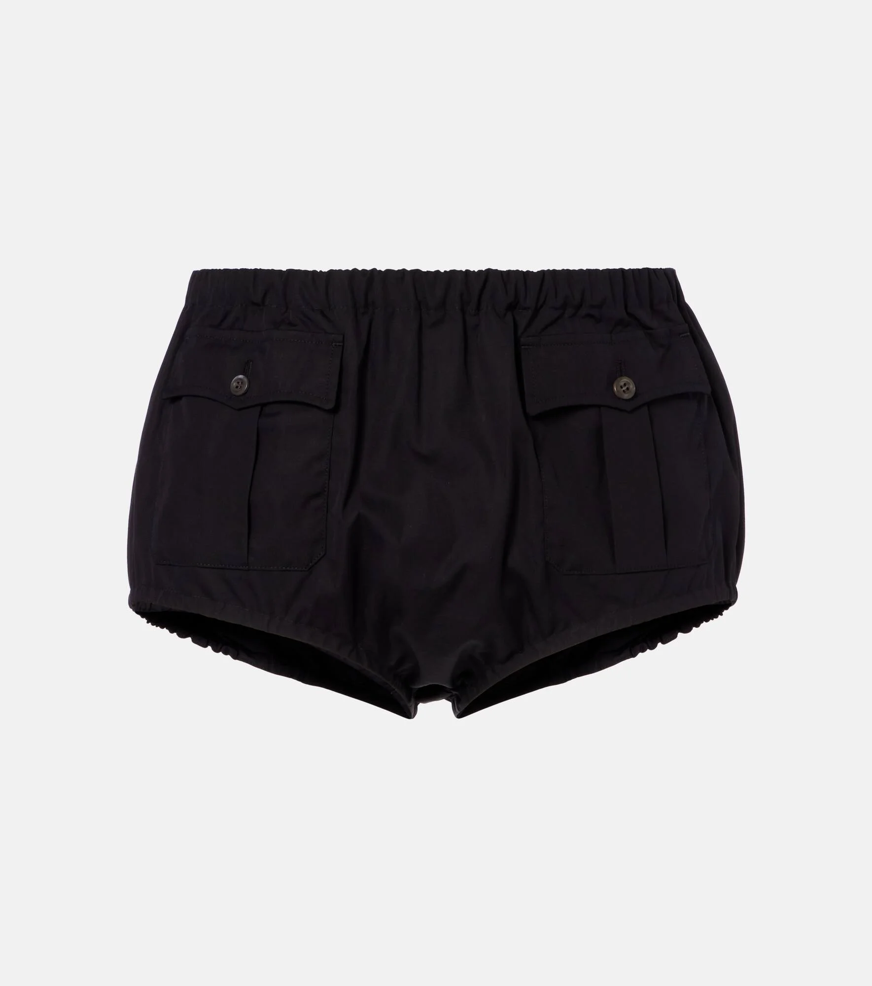 Prada takes Italian heritage into a distinctly modern direction with a streamlined and fashion-forward approach. These micro shorts are made from pure cotton and feature an elasticated waistband. Product Details - Material: 100% cotton - Care instructions: hand wash - Made in Italy - Color: black - Designer color name: Black - Contains non-textile parts of animal origin - Elasticated waistband - Pockets: flap pockets - Item number: P01165118 Size & Fit - True to size - Elasticated waist - Non-stretchy fabric - High-waisted - Low-cut leg - Height of model is 175cm-69" and wears a size 1