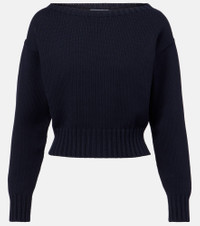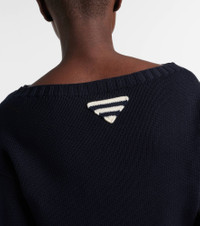 Prada takes Italian heritage into a distinctly modern direction with a streamlined and fashion-forward approach. This sweater is made from cotton, featuring ribbed-knit detailing on the boat neck, hem and cuffs. Product Details - Material: 100% cotton - Care instructions: dry clean - Made in Italy - Designer color name: Bleu - Item color: blue - Item number: P01009344