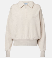 Prada's exceptional design makes even a casual cotton sweatshirt a noteworthy addition to your wardrobe. Made from especially soft cotton, this sweatshirt has a zip collar and a vintage-inspired printed logo. Product Details - Material: 100% cotton - Care instructions: dry clean - Made in Italy - Designer color name: Naturale - Item color: white - Item number: P01057721 Size & Fit - True to size - Dropped shoulders - Designed for a loose fit - Slightly stretchy fabric - Falls to the hip - The model seen in the picture is 178cm-5'10" and wearing a size XS