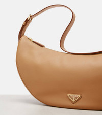 The Demi-Lune Large shoulder bag is crafted from smooth leather with a curved silhouette, zip closure, and subtle logo detail. Prada takes Italian heritage into a distinctly modern direction with a streamlined and fashion-forward approach. Product Details - Material: leather - Lining: leather - Made in Italy - Designer color name: Neutral - Item color: beige - Hardware color: gold - Adjustable shoulder strap - Closure: zipped top - Internal details: card slot - Detachable charm - Includes: dust bag - Item number: P01079974 Size & Fit - Height 16cm-6.5" - Width 40cm-15.5" - Depth 8cm-3" - Length of handles 81/62cm-32/24.5"