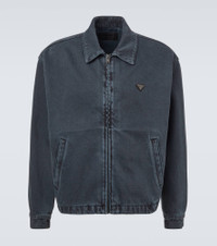 Instantly recognizable, the triangle has stood as Prada's enduring emblem since 1913. The iconic detail stands out on this blouson jacket, crafted from denim with a zip-up front and a washed finish. Product Details - Material: 100% cotton - Care instructions: machine wash at 30 degrees - Made in Italy - Designer color name: Obsidian - Item color: gray - Details: 100% calf leather - Contains non-textile parts of animal origin - Closure: zipped front - Cuff: buttoned - Pockets: welt pockets - Hem: elasticated - Item number: P01127328 Size & Fit - True to size - Dropped shoulders - Straight fit - Elasticated hem - Non-stretchy fabric - Falls to the hip - Height of model is 192cm-75.5" and wears a size L