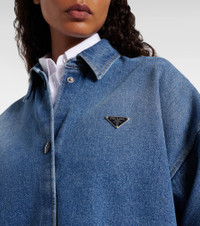 Prada takes Italian heritage into a distinctly modern direction with a streamlined and fashion-forward approach. With its wide silhouette and distinctive triangle logo, this denim shirt is the perfect layering piece. Product Details - Material: 100% cotton - Care instructions: machine wash at 30 degrees - Made in Romania - Designer color name: Light Blue - Item color: blue - Contains non-textile parts of animal origin - Collar: classic (Straight point) - Cuff: buttoned - Closure: buttoned front - Item number: P01061929 Size & Fit - True to size - Designed for an extremely oversized fit - Dropped shoulders - Non-stretchy fabric - Falls below the hip - The model seen in the picture is 178cm-5'10" and wearing a size IT 40