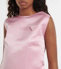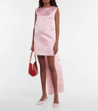 A coat tail-style hanging panel is a recurring motif in Prada's Spring/Summer '22 offering. Made from silk satin, this shift minidress features the label's triangular logo at the chest. Product Details - Made in Italy - Material: 100% silk - Care instructions: dry clean - Designer color name: Petalo - Item number: P00654573 Size & Fit - Fits large to size - we recommend trying one size smaller - Low back - Straight fit - The model seen in the picture is 178cm-5'10" and wearing a size IT 38