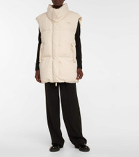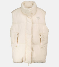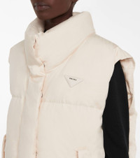 Look to Prada for trans-seasonal layering, courtesy of this cream-white vest. It's filled with insulating down – enhanced with a funnel-neck –inside a lightweight cotton shell. Product Details - Material: 100% cotton - Care instructions: hand wash - Made in Romania - Designer color name: Seta - Lining: 100% cotton - Filling: 90% down, 10% feathers - Closure: two-way zipped front with snap-button fastenings - Pockets: zipped pockets - Contains non-textile parts of animal origin - Item number: P00587896 Size & Fit - Fits large to size - we recommend trying one size smaller - Designed for an extremely oversized fit - Thick material - Falls below the hip - The model seen in the picture is 178cm-5'10" and wearing a size IT 38