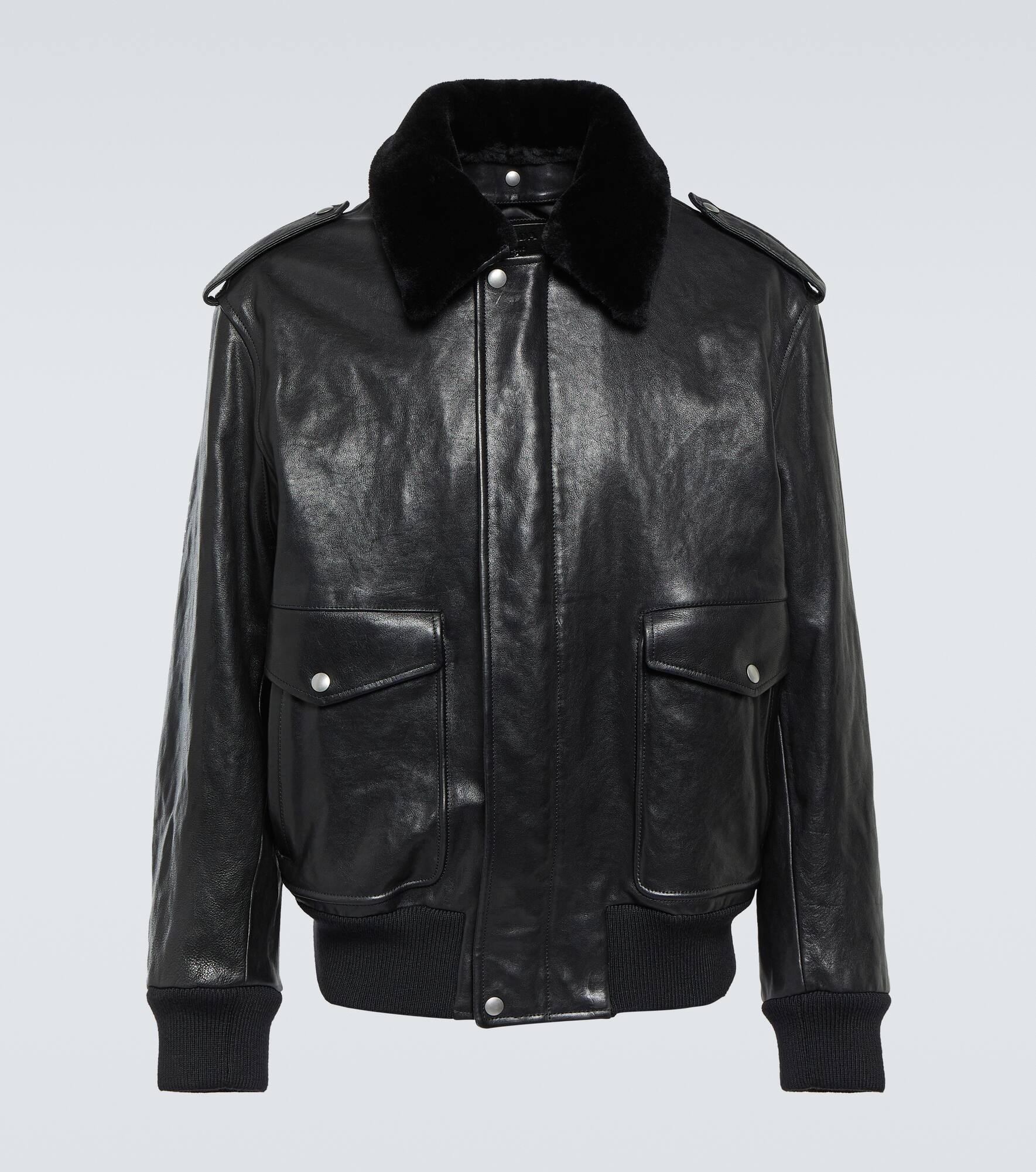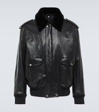 Prada's signature spazzolato calfskin is a full grain leather that's brushed to a high shine. Appearing with an aviator-inspired silhouette, this padded jacket has a faux fur-inspired collar, shoulder epaulets, and a concealed placket. Product Details - Made in Italy - Trim: 95% wool, 4% polyamide, 1% elastane - Pockets: snap-buttoned pocket, side slit pockets - Designer color name: Nero - Lining: 100% viscose - Filling: 100% polyester - Care instructions: specialist clean - Material: 100% calf leather - Closure: zipper, snap-button fastenings - Comes with garment bag - Item number: P00837252 Size & Fit - Fits small to size - we recommend trying one size larger - Designed for a loose fit - Falls to the hip - The model in the picture is 185cm-6'1" and wearing a size IT 50