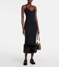 Faux shearling-trimmed midi dress
