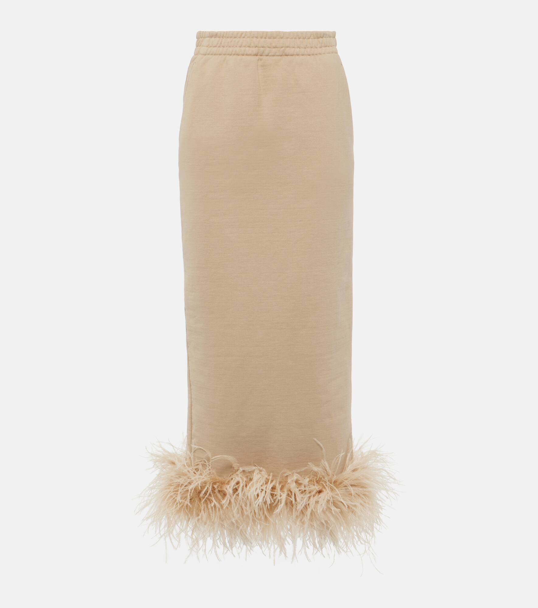 Product Details - Material: 100% cotton - Care instructions: machine wash at 30 degrees - Made in Romania - Designer color name: Albino - Trim: 50% turkey feathers , 50% ostrich feathers - Pockets: side slit pockets - Elasticated waistband - Item number: P00876670 Size & Fit - Fits small to size - we recommend trying one size larger - Elasticated waist - Adjustable at the waist - Slightly stretchy fabric - slit length 31,0cm-12" - The model seen in the picture is 178cm-5'10" and wearing a size S - Length of fringe 10,0cm-4"