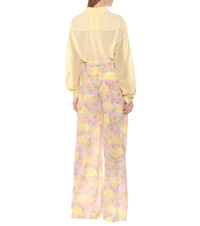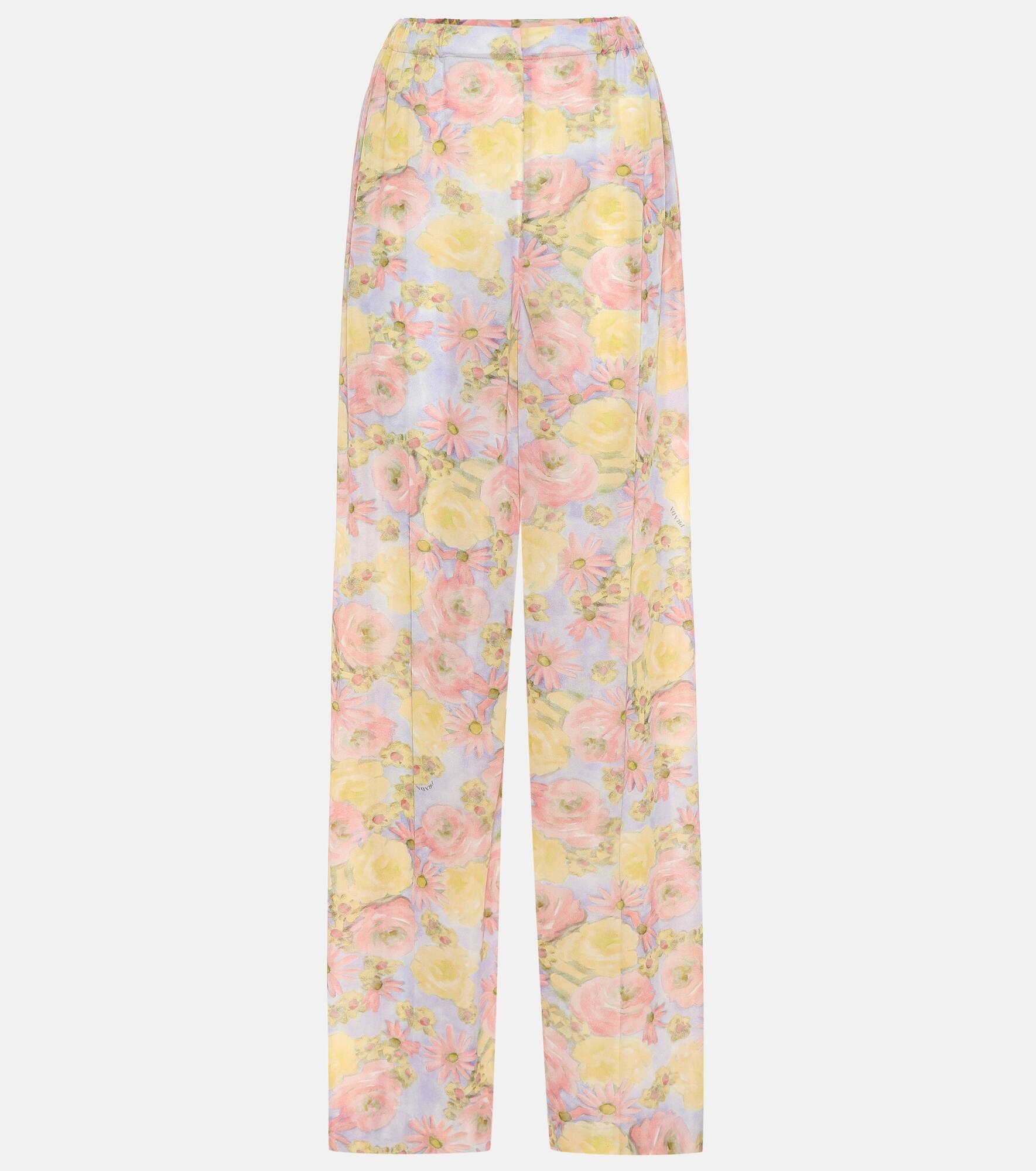 Prada brings its signature insouciance to this pair of wide leg pants rendered in pastel hued florals. The high-waisted silhouette has been crafted in Italy from lightweight jersey that offs a draping fall across the figure. Match yours with a coordinating top from the collection or temper the feminine feel with a tough-luxe leather jacket. Product Details - Made in Italy - Elasticated waistband - Material: 100% polyamide - Designer color name: Glicine - Care instructions: hand wash - Item number: P00366271 Size & Fit - True to size - Wide-leg - High-waisted - The model seen in the picture is 178cm-5'10" and wearing a size IT 40