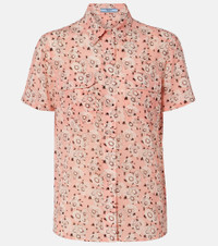 Prada takes Italian heritage into a distinctly modern direction with a streamlined and fashion-forward approach. Crafted from a lightweight silk blend, this shirt features a vibrant floral print that captures the spirit of the warm season. Product Details - Material: 91% silk, 9% elastane - Care instructions: dry clean - Made in Italy - Designer color name: Camelia - Item color: pink - Collar: classic (Straight point) - Closure: buttoned placket - Pockets: flap chest pockets - Item number: P01061904 Size & Fit - True to size - Dropped shoulders - Designed for a loose fit - Non-stretchy fabric - Falls below the hip - The model seen in the picture is 178cm-5'10" and wearing a size IT 40