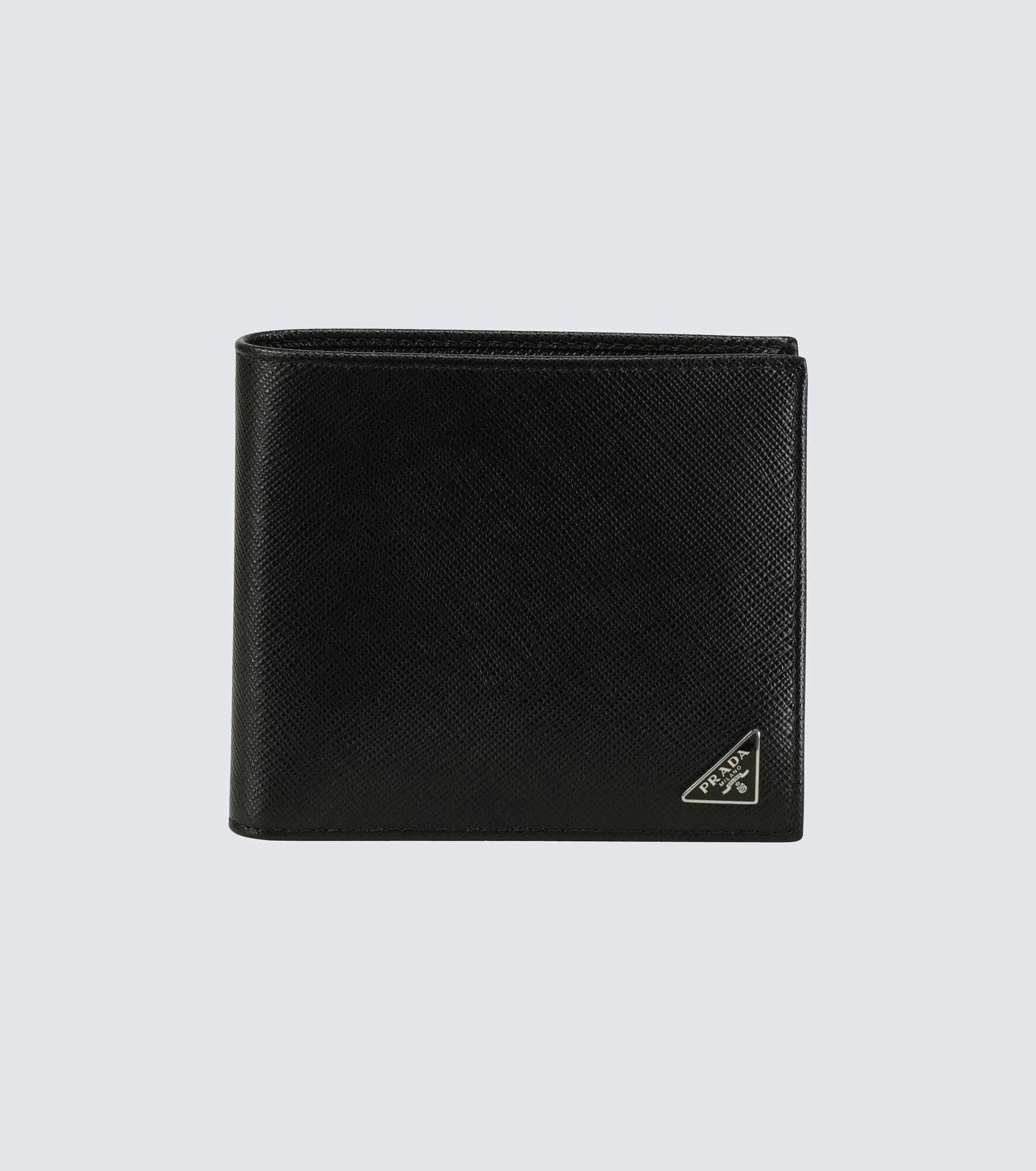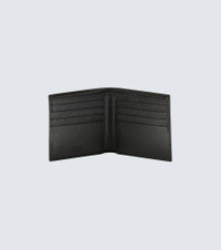 Prada crafts this classic folded wallet from textured calf leather, it opens to reveal eight card slots, two bill compartments, additional storage and is accented with the luxury label motif at the front. Product Details - Material: calf leather - Lining: fabric - Made in Italy - Designer color name: Black - Internal details: two internal compartments, Card slots - Item number: P00442598 Size & Fit - Height 9,5cm-3.5" - Width 11cm-4.5" - Depth 2,5cm-1"