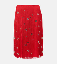 Fringed embellished silk midi skirt