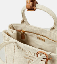 Product Details - Material: fabric - Lining: fabric - Made in Italy - Designer color name: Naturale - Trim: leather - Internal details: internal zipped pocket, internal slot pocket - Closure: open top - Top handles, Detachable, adjustable shoulder strap - Protective feet - Comes with dust bag - Item number: P00881731 Size & Fit - Height 19cm-7.5" - Width 27cm-10.5" - Max. depth 14cm-5.5" - Length of handles 32cm-12.5" - Adjustable shoulder strap - Min. length shoulder strap 76cm-30" - Max. length shoulder strap 120cm-47"