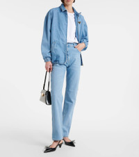 Product Details - Material: 100% cotton - Care instructions: machine wash at 30 degrees - Made in Italy - Designer color name: Sky - Closure: concealed button placket - Pockets: five pockets - Details: 100% leather - Contains non-textile parts of animal origin - Item number: P00886625 Size & Fit - Fits small to size - we recommend trying one size larger - Non-stretchy fabric - Straight leg - High-rise - The model seen in the picture is 178cm-5'10" and wearing a size 27