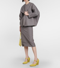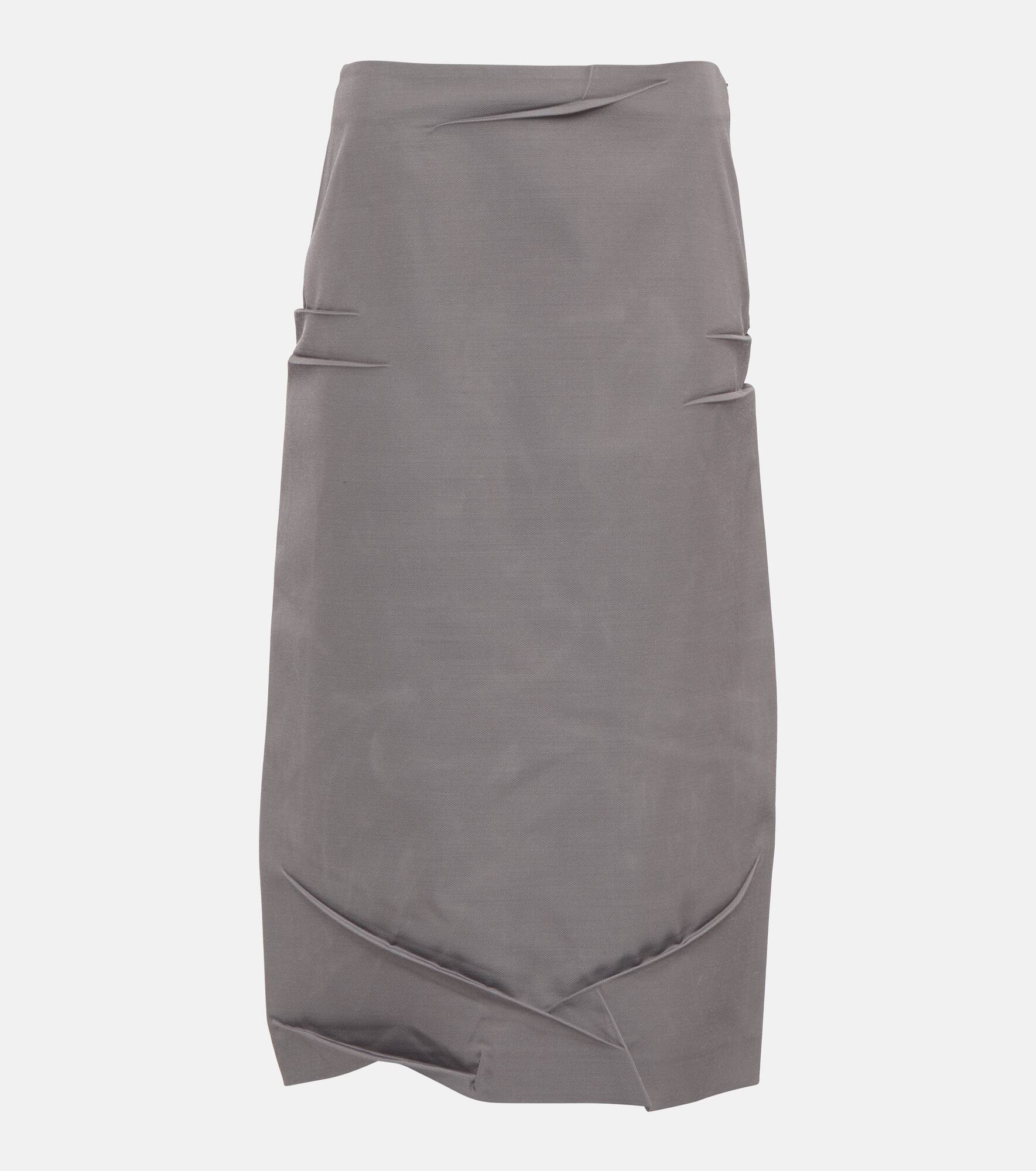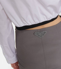Couture meets workwear with this midi skirt from Prada, from the brand’s Spring/Summer 2023 collection. The design is crafted from a wool blend with handcrafted pleats and features an embroidered triangle logo at its back. Product Details - Made in Italy - Material: 62% polyester, 38% wool - Care instructions: dry clean - Designer color name: Acciaio - Item number: P00786973 Size & Fit - True to size - Stiff material - The model seen in the picture is 178cm-5'10" and wearing a size IT 40