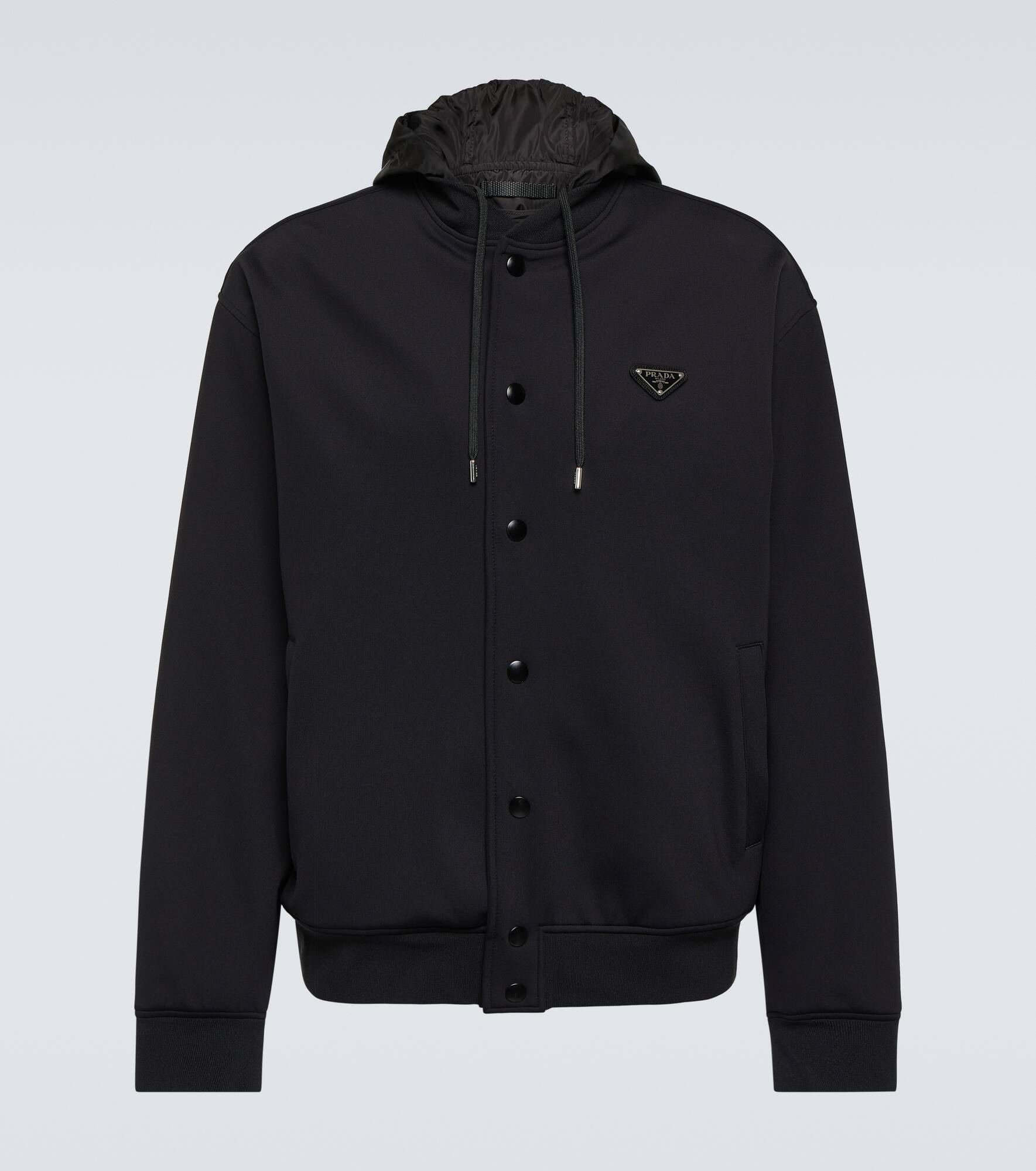 Product Details - Material: 87% polyamide, 13% elastane - Care instructions: hand wash - Made in Italy - Designer color name: Nero+Nero - Material II: 90% polyamide, 10% elastane - Hood: 100% polyamide - Closure: snap-buttoned front - Pockets: side slit pockets - Drawstring hood - Contains non-textile parts of animal origin - Item number: P00899828 Size & Fit - True to size - Dropped shoulders - Designed for a loose fit - Partly stretchy fabric - Falls below the hip - The model in the picture is 185cm-6'1" and wearing a size M