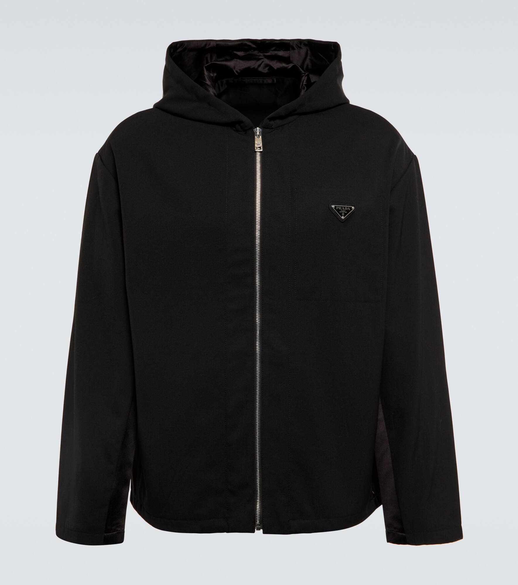 This jacket from Prada is made in Italy from virgin wool. The functional design features a hood, a zipped front, and a chest pocket accented with a triangle logo plate. Product Details - Made in Italy - Material: 100% virgin wool - Hood - Designer color name: Nero - Material II: 100% silk - Contains non-textile parts of animal origin - Lining: 100% viscose, fully lined - Pockets: side slit pockets - Closure: zipped front - Care instructions: dry clean - Item number: P00748833 Size & Fit - True to size - For a closer fit, we recommend taking one size down - Dropped shoulders - Falls to the hip - The model in the picture is 185cm-6'1" and wearing a size M