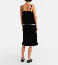 Lace-trimmed velvet midi skirt