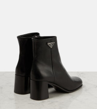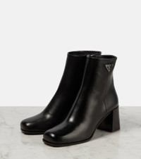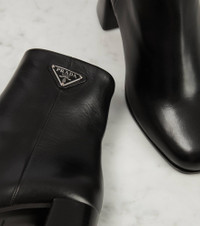 Emblazoned with the label's iconic triangular logo, these ankle boots from Prada are a timeless and elegant addition to your edit. Made from smooth black leather, they are set on block heels with squared toes. Product Details - Upper: calf leather - Lining: leather - Sole: leather insole, leather and rubber sole - Toe shape: square toe - Made in Italy - Includes: shoe box - Designer color name: Nero - Closure: zipped side - Item number: P00819522 Size & Fit - True to size - European sizes - 7cm-3" heel (size EU 38)