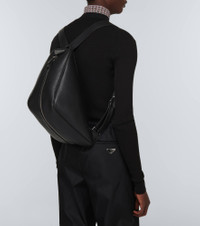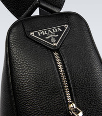 Showcase Prada’s affinity for angular lines with this backpack. Made in Italy from grained leather, the shape of this accessory is inspired by the house’s triangle logo plaque. This zipped accessory is lined with Re-Nylon. Product Details - Closure: zipped top - Internal details: fabric lining - Designer color name: Nero - Made in Italy - Comes with dust bag - Material: leather - Trim: leather - Color of fastening: silver - Adjustable shoulder straps - Item number: P00700327 Size & Fit - Height 43cm-17" - Max. width 23cm-9" - Max. depth 18cm-7" - Min. length shoulder strap 69cm-27" - Max. length shoulder strap 81cm-32"