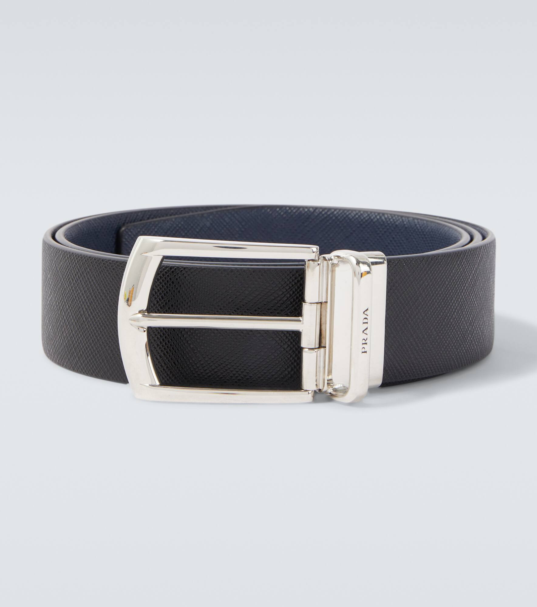 Prada’s leather belt is crafted in Italy with leather and finished with a sleek buckle. This minimalist design reflects the brand’s refined approach to everyday accessories. Product Details - Material: calf leather, metal - Lining: calf leather - Made in Italy - Designer color name: Black - Item color: black - Hardware color: silver - Item number: P01094077 Size & Fit - Width 3,3cm-1.5" - Buckle width 4,2cm-1.5"