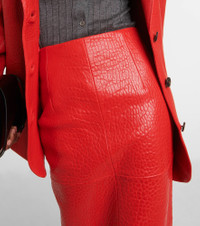 Timeless elegance meets a contemporary edge with this red Prada pencil skirt. Made in Italy, the nappa leather transforms this classic silhouette with sleek lines, a back slit, and a side zipper closure. Product Details - Material: 100% lamb leather - Care instructions: do not wash - Made in Italy - Designer color name: Rosso - Closure: concealed zipper - Item number: P00850665 Size & Fit - True to size - Leather relaxes over time - The model seen in the picture is 178cm-5'10" and wearing a size IT 40