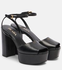 Prada takes Italian heritage into a distinctly modern direction with a streamlined and fashion-forward approach. Made in Italy from black leather, these sandals rest atop platform soles and feature gold-toned logos on the toe straps. Product Details - Upper: leather - Lining: leather - Sole: leather insole, leather and rubber sole - Toe shape: round open toe - Made in Italy - Includes: shoe box - Designer color name: Black - Item color: black - Hardware color: gold - Closure: buckle-fastening ankle strap - Item number: P01110818 Size & Fit - True to size - European sizes - 11,5cm-4.5" heel (size EU 38) - 4,5cm-2" platform (size EU 38)