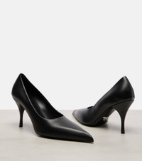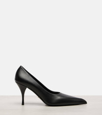 Prada takes Italian heritage into a distinctly modern direction with a streamlined and fashion-forward approach. These elegant pumps are carefully crafted from smooth leather and are complete with pointed toes and 85mm stiletto heels. Product Details - Upper: leather - Lining: leather - Sole: leather insole, leather and rubber sole - Toe shape: pointed toe - Made in Italy - Includes: dust bag, shoe box - Designer color name: Black - Item color: black - Hardware color: silver - Item number: P01094263 Size & Fit - Fits slightly large to size - we recommend trying a half size smaller - Slightly narrow at the toe - Best fit for narrow feet - European sizes - 8,5cm-3.5" heel (size EU 38)