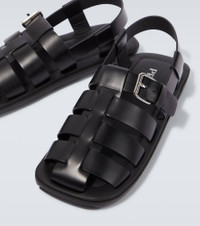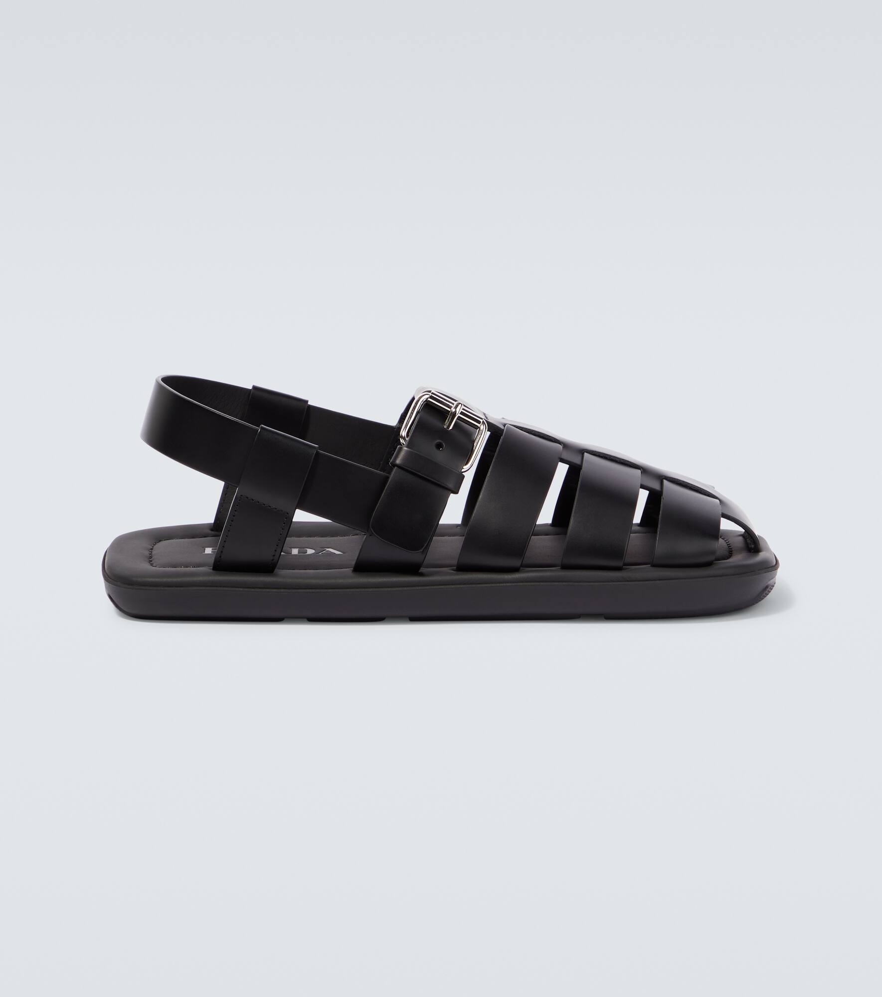 Update your warm-weather footwear for the new season with these sandals from Prada. Crafted from black leather, the style features a caged construction and padded rubber sole. Product Details - Upper: leather - Lining: leather - Sole: leather insole, rubber sole - Toe shape: square open toe - Made in Italy - Includes: shoe box, dust bags - Designer color name: Nero - Closure: buckle fastening - Hardware color: silver - Item number: P00758754 Size & Fit - True to size - Half sizes please take the next size down - UK sizes