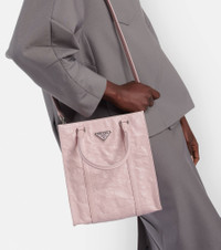 Made from textured leather, this tote bag features a rectangular silhouette, twin top handles, and a detachable shoulder strap. This piece features Prada's iconic triangular logo plaque, which embodies simplicity, elegance, and quality. Product Details - Detachable, adjustable shoulder strap, Top handles - Internal details: internal zipped pocket, leather lining - Designer color name: Alabastro - Made in Italy - Comes with dust bag - Closure: open top - Material: lamb leather - Item number: P00779130 Size & Fit - Height 24cm-9.5" - Width 22cm-8.5" - Depth 8,5cm-3.5" - Length of handles 30cm-12" - Min. length shoulder strap 112cm-44" - Max. length shoulder strap 122cm-48"