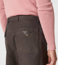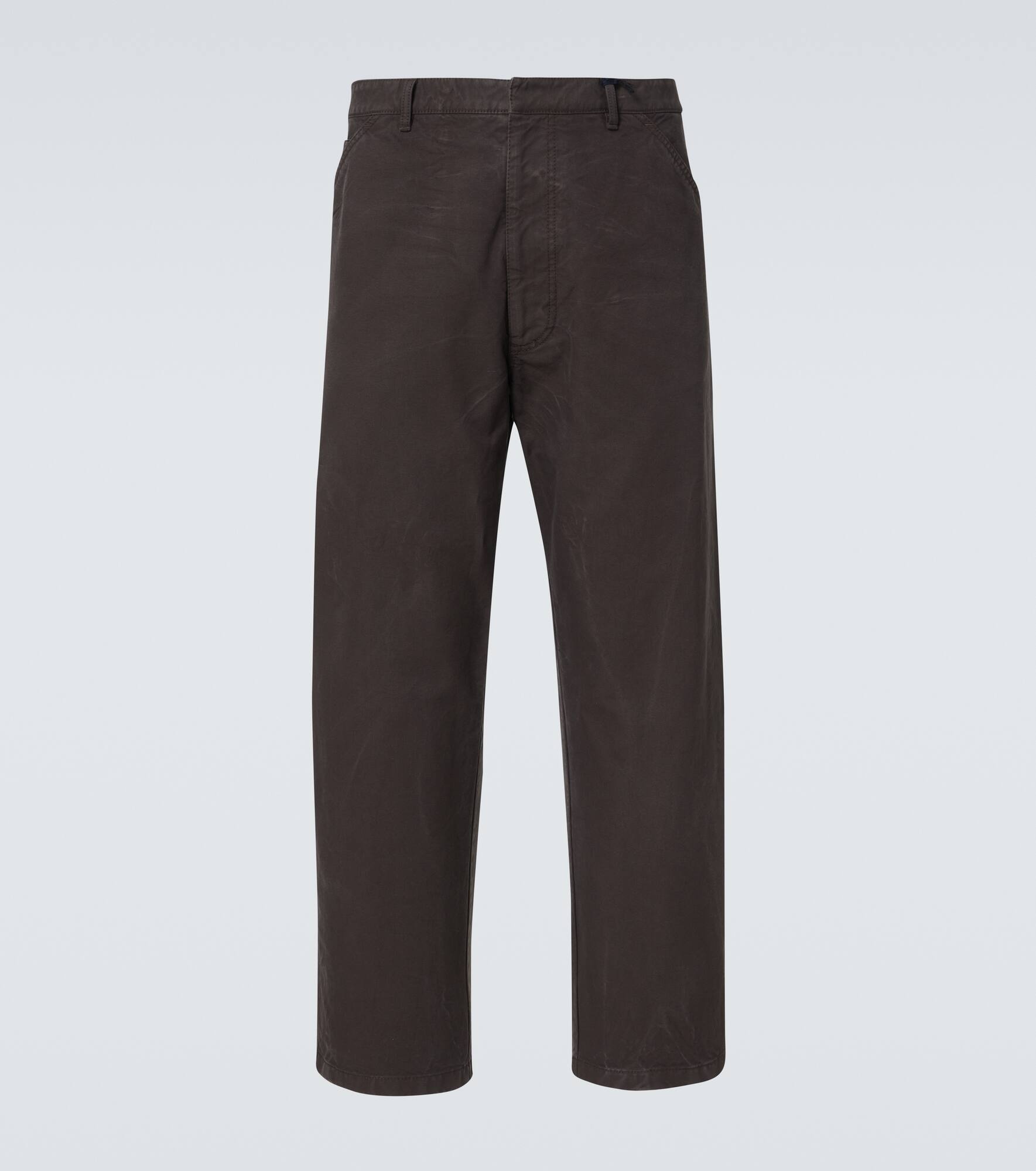 Product Details - Material: 100% cotton - Care instructions: dry clean - Made in Italy - Designer color name: Marrone - Closure: zipper, hook fastening - Pockets: side slit pockets, back pockets - Belt loops - Trim: 100% goat leather - Contains non-textile parts of animal origin - Item number: P01009747 Size & Fit - True to size - Non-stretchy fabric - Straight leg - The model seen in the picture is 178cm-5'10" and wearing a size L