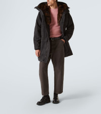 Leather-trimmed cotton straight pants