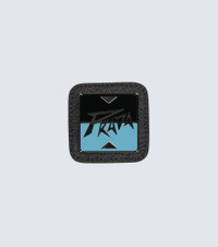 Designed to be attached to other accessories, this black leather badge from Prada features a retro take on the label's logo. Product Details - Trim: leather - Made in Italy - Item number: P00450643 Size & Fit - Height 4.5cm-2" - Width 4.5cm-2"