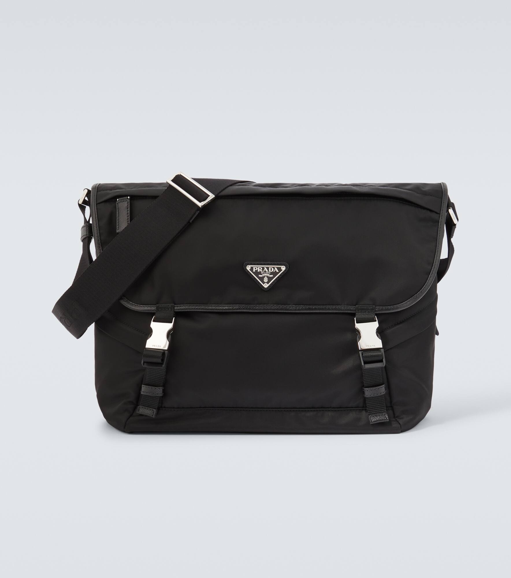 Leather-trimmed Re-Nylon messenger bag