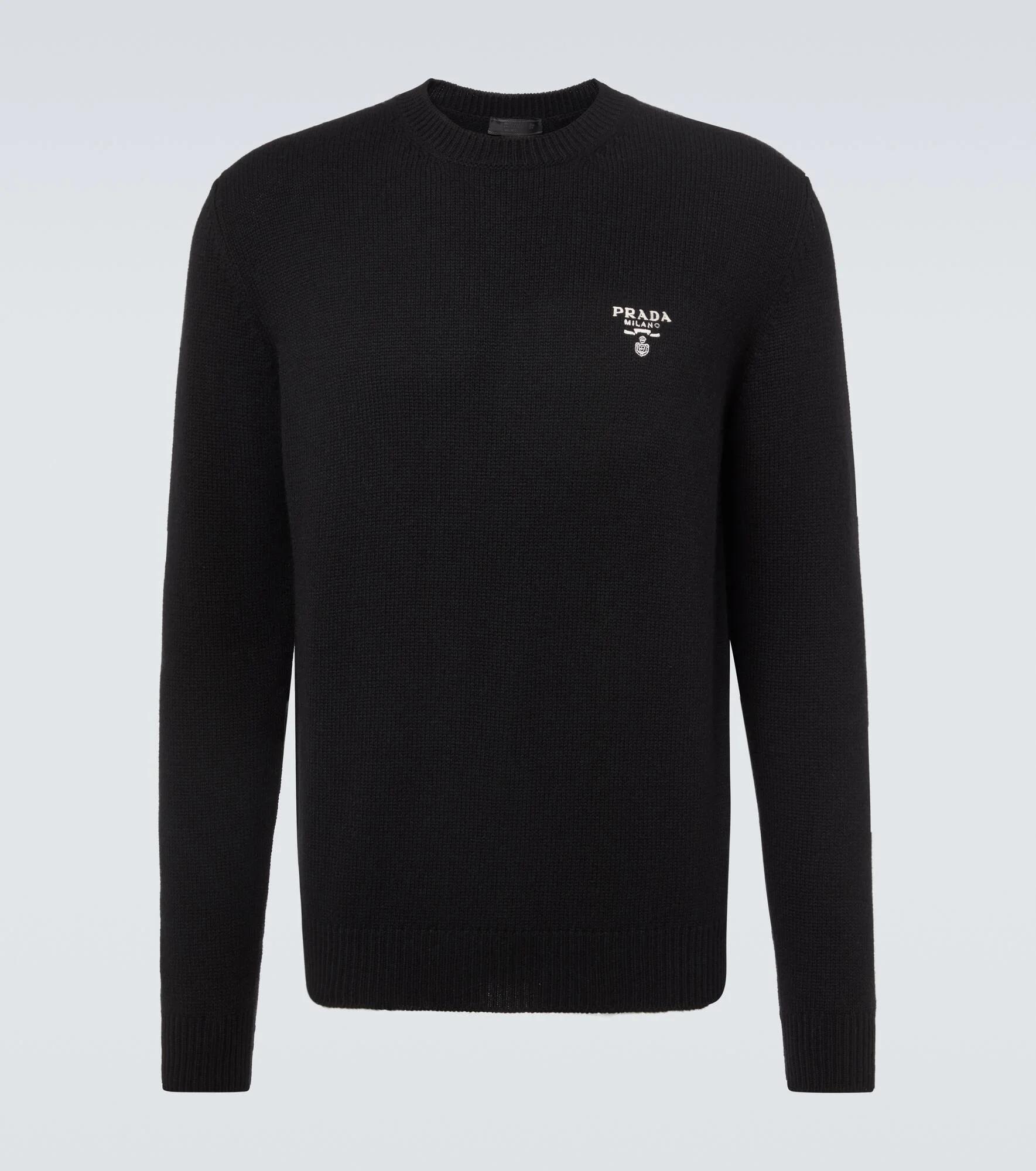 Prada embodies modern sophistication, blending timeless Italian craftsmanship with an innovative spirit. Crafted from pure cashmere, this sweater comes with a classic crewneck and an embroidered logo on the chest. Product Details - Material: 100% cashmere - Care instructions: dry clean - Made in Italy - Designer color name: Nero - Item color: black - Collar: crewneck - Cuff: ribbed - Hem: ribbed - Item number: P01060799 Size & Fit - True to size - Straight fit - Slightly stretchy fabric - Falls to the hip - Height of model is 192cm-75.5" and wears a size IT 50