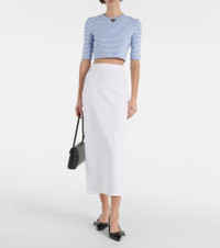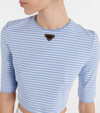 Product Details - Material: 94% cotton, 6% elastane - Care instructions: hand wash - Made in Romania - Designer color name: Celeste + Bianco - Contains non-textile parts of animal origin - Item number: P00886578 Size & Fit - Fits small to size - we recommend trying one size larger - Straight fit - Stretchy fabric - Cropped - The model seen in the picture is 178cm-5'10" and wearing a size IT 42