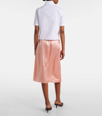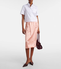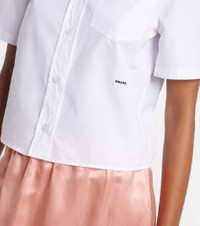 Prada blends innovative design with timeless sophistication. Crafted from cotton poplin, this shirt is cut to a slightly cropped silhouette and features a patch pocket at the chest with the house's signature embroidery placed just below. Product Details - Material: 100% cotton - Care instructions: dry clean - Made in Italy - Designer color name: Bianco - Item color: white - Contains non-textile parts of animal origin - Collar: button-down - Closure: buttoned placket - Pockets: angled chest pocket - Item number: P01061900 Size & Fit - True to size - Straight fit - Non-stretchy fabric - Slightly cropped - The model seen in the picture is 178cm-5'10" and wearing a size IT 40
