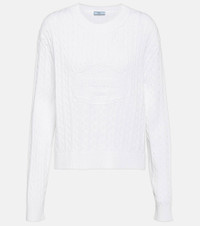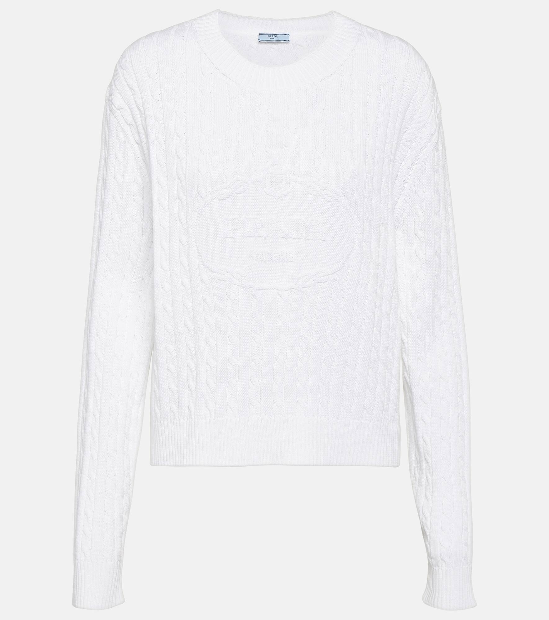 Tap into Prada's minimal yet sophisticated aesthetic with this sweater. Crafted in Italy from cotton knit fabric and designed for a regular fit, it's accented with the house's logo on the chest. Product Details - Material: 100% cotton - Care instructions: dry clean - Made in Italy - Designer color name: Bianco - Item number: P00842516 Size & Fit - True to size - Dropped shoulders - Designed for a loose fit - Falls to the hip - The model seen in the picture is 178cm-5'10" and wearing a size IT 40