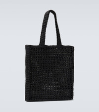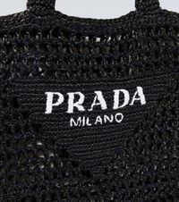 This tote bag from Prada is a versatile accessory for the warm season. Made from raffia-effect crochet and accented with a distinctive logo on the front, it will hold all of your essentials. Product Details - Material: fabric - Internal details: fabric lining - Designer color name: Nero - Made in Italy - Comes with dust bag, Comes with a box - Top handles - Trim: leather - Item number: P00758807 Size & Fit - Height 40cm-15.5" - Width 40cm-15.5" - Depth 4,5cm-2" - Length of handles 58cm-23"