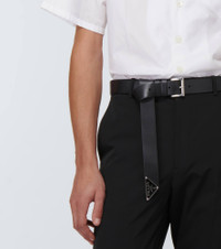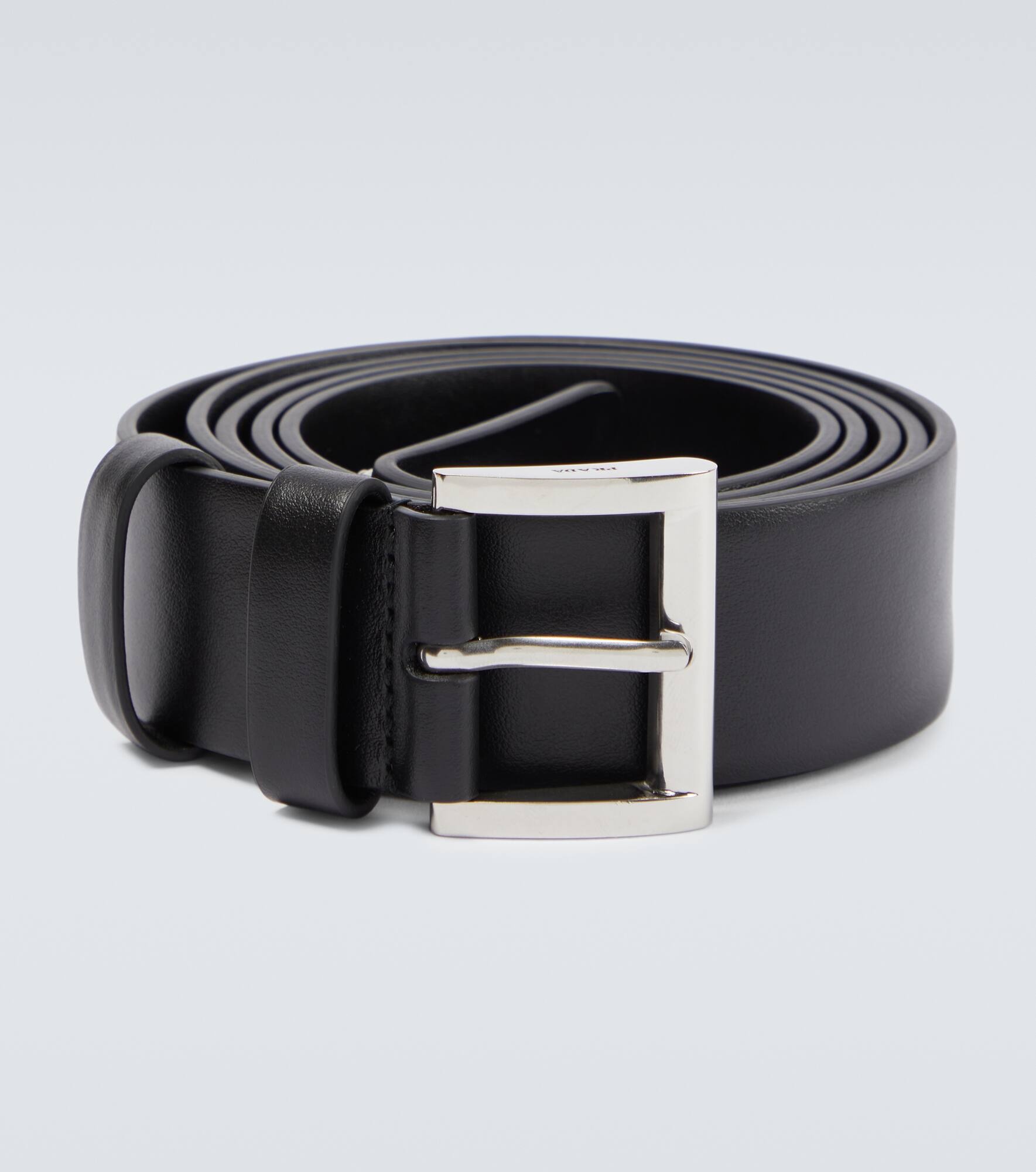 This belt from Prada has been made in Italy from smooth calfskin leather and is tipped with a signature branded triangle on one end. Product Details - Comes with dust bag - Closure: buckle fastening - Made in Italy - Color of fastening: silver - Material: calf leather - Item number: P00700273 Size & Fit - Width 3,5cm-1.5" - Buckle width 3,5cm-1.5"