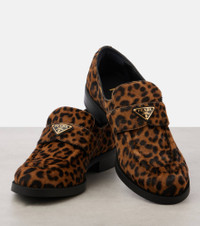 Logo leopard-print calf hair loafers