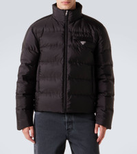 Prada takes Italian heritage into a distinctly modern direction with a streamlined and fashion-forward approach. This down jacket features a quilted design with the house's signature triangle logo at the chest. Product Details - Material: 100% polyamide (recycled) - Care instructions: dry clean - Made in Italy - Designer color name: Black - Item color: black - Lining: 100% polyamide (recycled) - Material II: 100% polyester (recycled) - Filling: 90% down, 10% goose feathers - Contains non-textile parts of animal origin - Closure: zipped front - Pockets: zipped pockets - Drawstring at the hem for adjustable fit - Item number: P01093734 Size & Fit - True to size - Straight fit - Non-stretchy fabric - Falls to the hip - The model in the picture is 185cm-6'1" and wearing a size IT 50