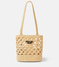Prada's triangle logo pays tribute to the brand's long-standing connection to the Italian royal family, the House of Savoy. This is reflected in the geometric motif of the bag, which also features the brand's name embroidered near the handle. Product Details - Material: fabric - Lining: unlined - Made in Madagascar - Designer color name: Naturale - Item color: brown - Top handles - Trim: leather - Item number: P00997471 Size & Fit - Height 18cm-7" - Max. width 21cm-8.5" - Depth 10cm-4" - Length of handles 50 cm-19.5"