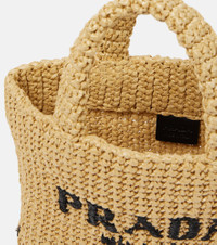 This raffia shopper from Prada is the perfect companion on casual summer days. It has a close weave and is topped with a contrasting logo at the front. Product Details - Material: raffia - Lining: fabric - Made in Italy - Designer color name: Naturale - Internal details: centre slot compartment - Comes with dust bag - Top handles - Closure: open top - Item number: P00655352 Size & Fit - Height 22cm-8.5" - Width 25cm-10" - Depth 8cm-3" - Length of handles 24cm-9.5"